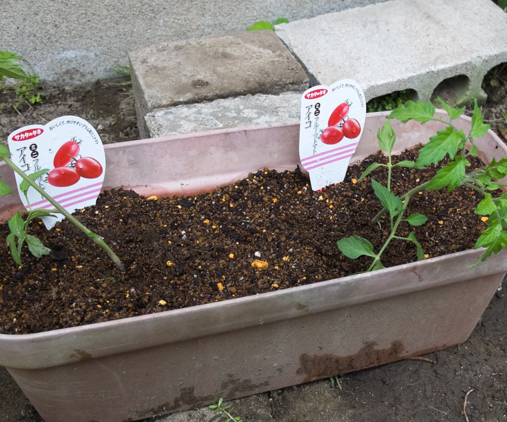 仕方がないので雨が降り出す前にホームセンターに出かけてキュウリとミニトマトの苗を買ってきてプランターに植えました。ここのところ毎年ゴーヤを植えている場所なんですが、今年はキュウリにしました。