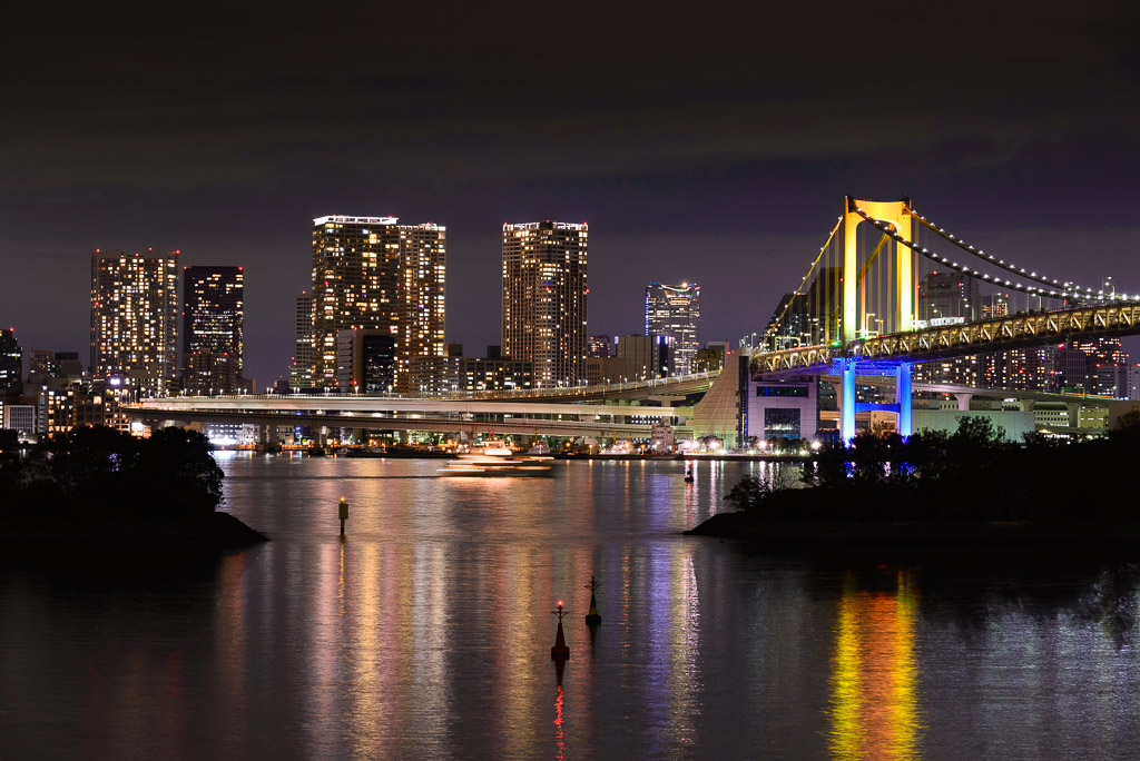 今回の目的として「回折もきにせずF値をおもいっきり絞って光芒をきれいに出そう」っというテーマがあったのですが、レインボーブリッジなどはあまりに遠すぎてダメでした。等倍で見ると光芒はでているんですが、目立ちません。
