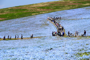 人を入れないでの撮影は無理ですが、青空とネモフィラのグラデーションが気持ちいいです。